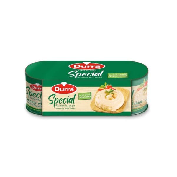 حمص بالطحينة الفاخرة من شركة الدرة العالمية، الشركة التي اشتهرت بجودتها العالية وتنوع منتجاتها الغذائية التي وصلت إلى كل بيت. يأتيكم هذا المنتج في علبة معدنية محكمة الإغلاق ليحافظ على الطعم الأصيل والجودة الفائقة التي تبحثون عنها 🌟.